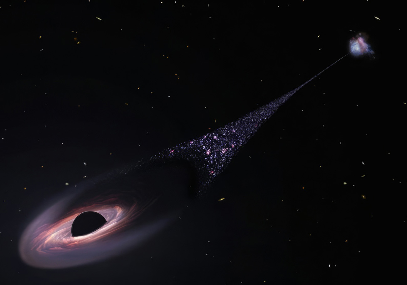 A supermassive black hole is fleeing at a cosmic speed of 1,000 km/s — Webb unveils the mystery of a 200,000-light-year tail